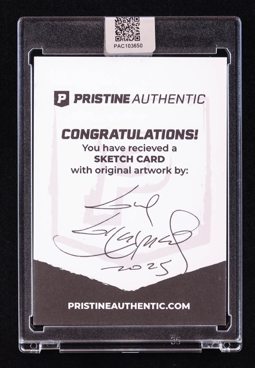 This sketch card includes original art by world-renowned illustrator, Guy Gilchrist.