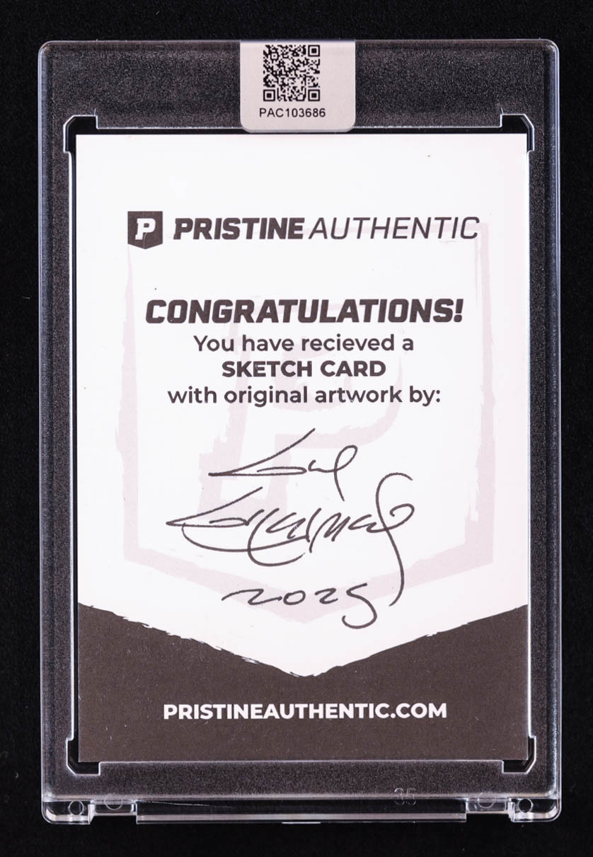 This sketch card includes original art by world-renowned illustrator, Guy Gilchrist.
