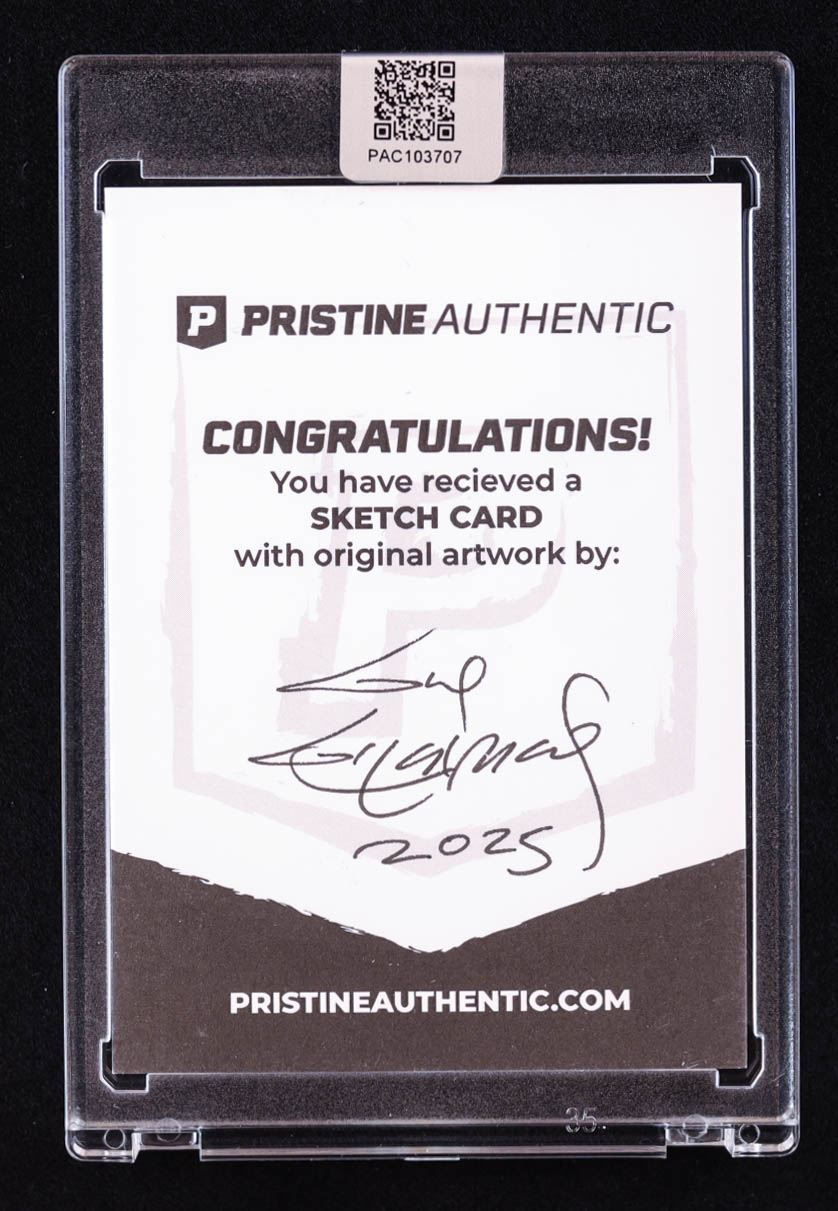 This sketch card includes original art by world-renowned illustrator, Guy Gilchrist.