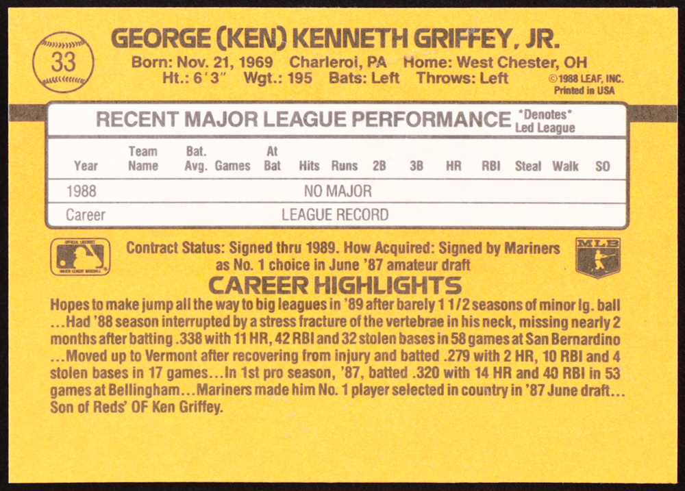 Ken Griffey Jr. 1989 Donruss #33 RR RC