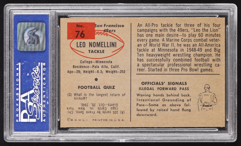 Leo Nomellini 1954 Bowman #76 SP (PSA 8)