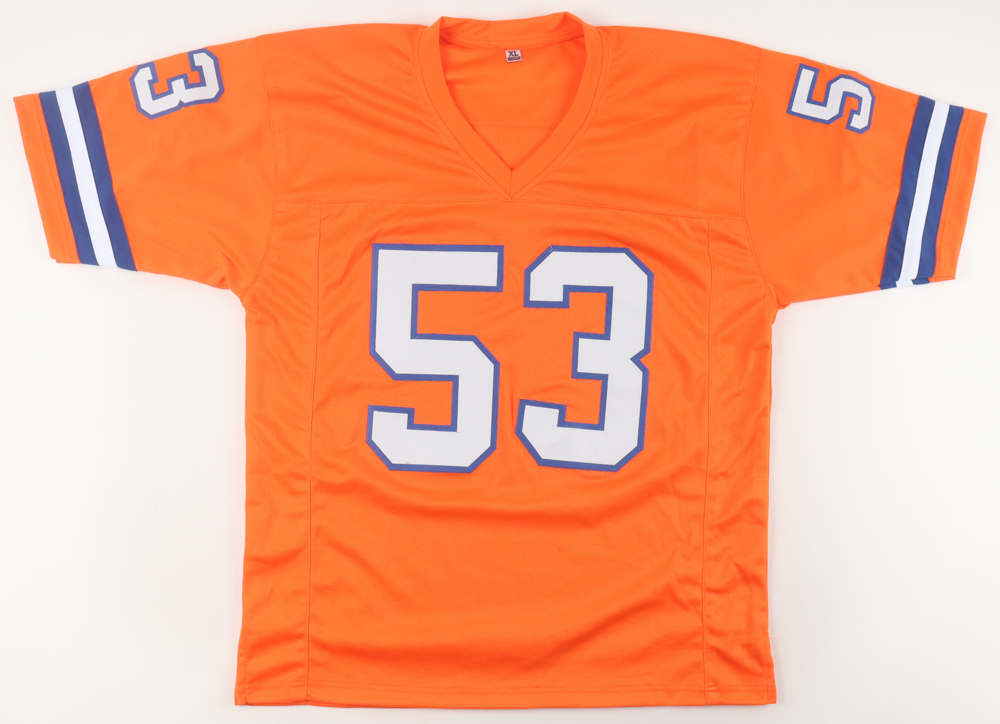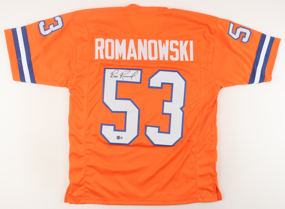 Custom jersey. Everything sewn on, size XL. Hand-signed by Bill Romanowski.