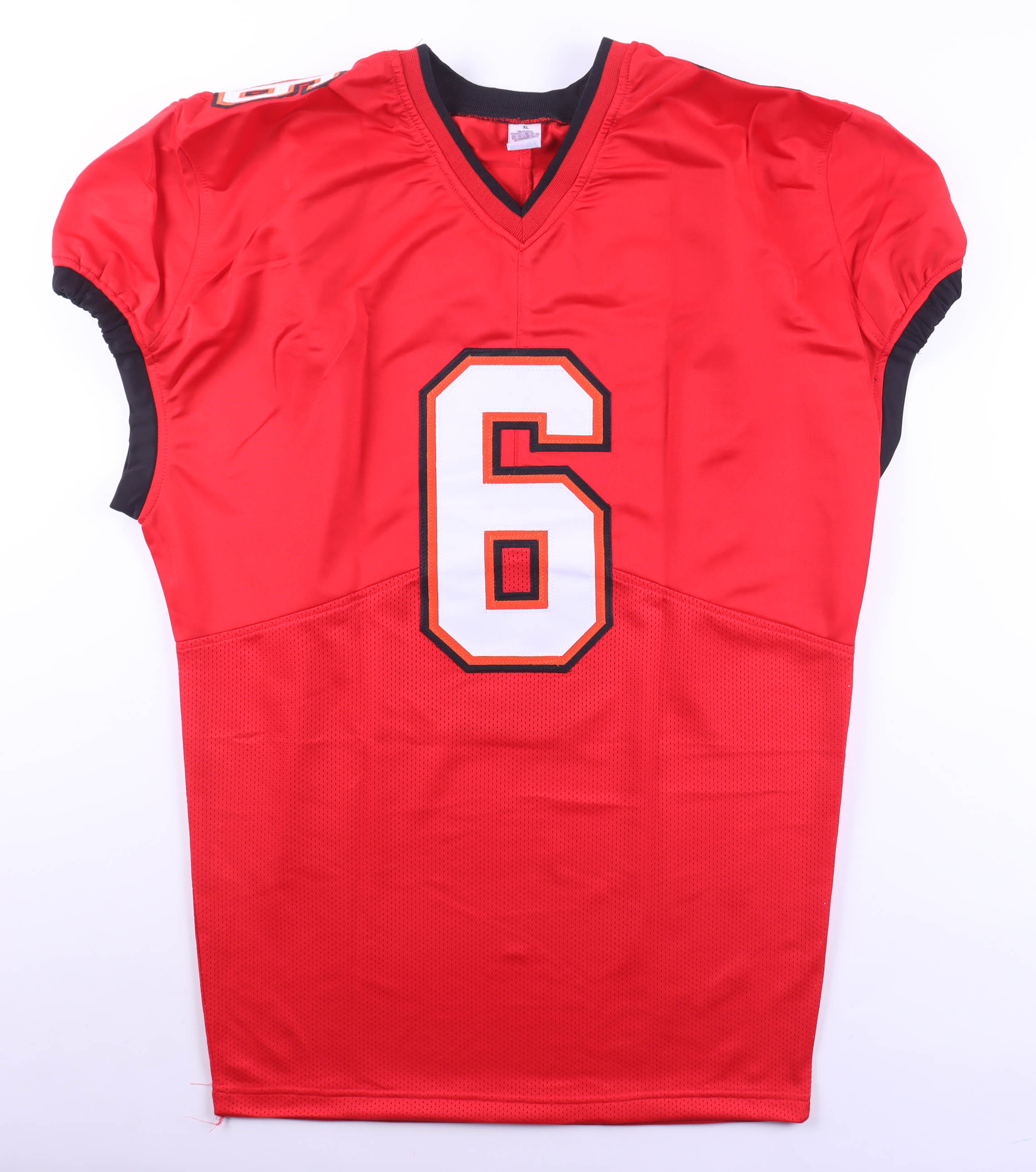 Custom jersey with everything sewn on, size XL. Hand-signed by Baker Mayfield.
