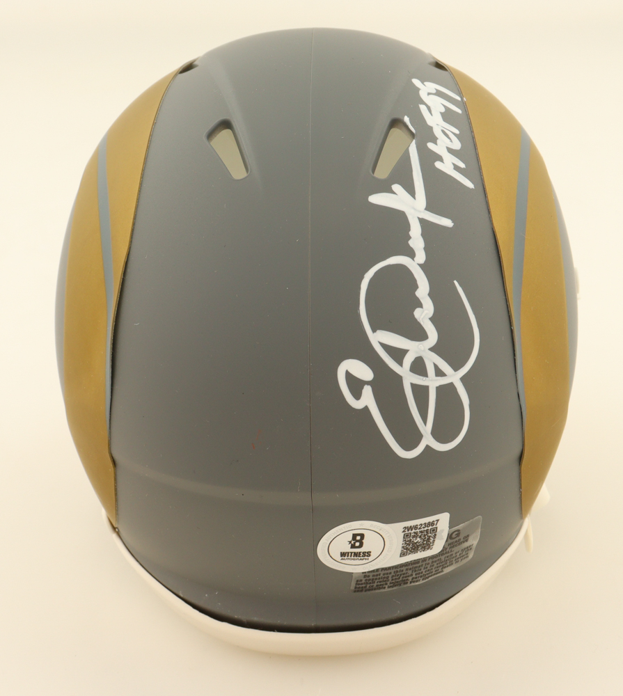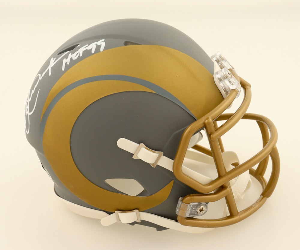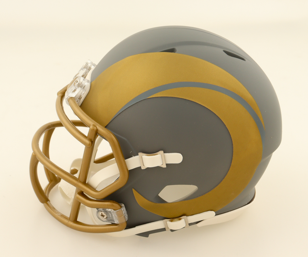 Riddell Los Angeles Rams slate alternate speed mini helmet. Hand-signed and inscribed by Eric Dickerson (HOF).