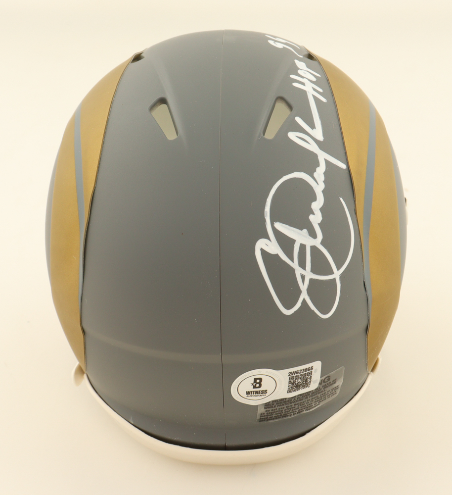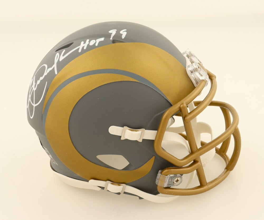 Riddell Los Angeles Rams slate alternate speed mini helmet. Hand-signed and inscribed by Eric Dickerson (HOF).