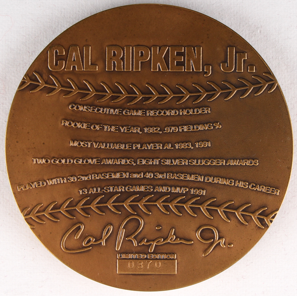 Cal Ripken Jr. LE Solid Bronze Coin (Highland Mint COA)