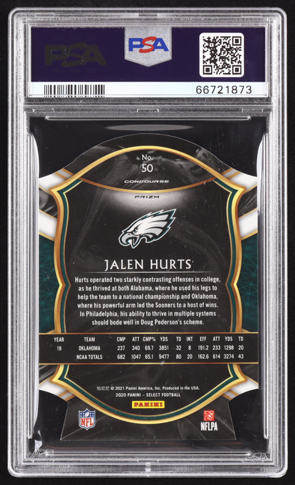 Jalen Hurts 2020 Select Prizm Red Die Cut #50 RC (PSA 9)