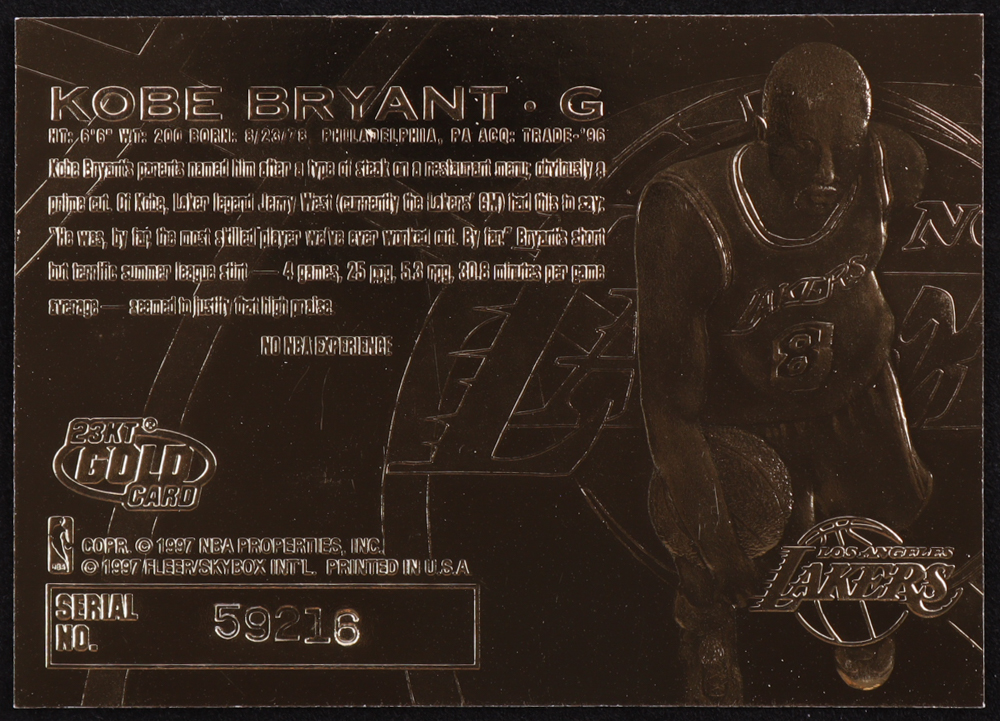 Kobe Bryant 1996-97 Fleer Purple Signature 23Kt Gold RC