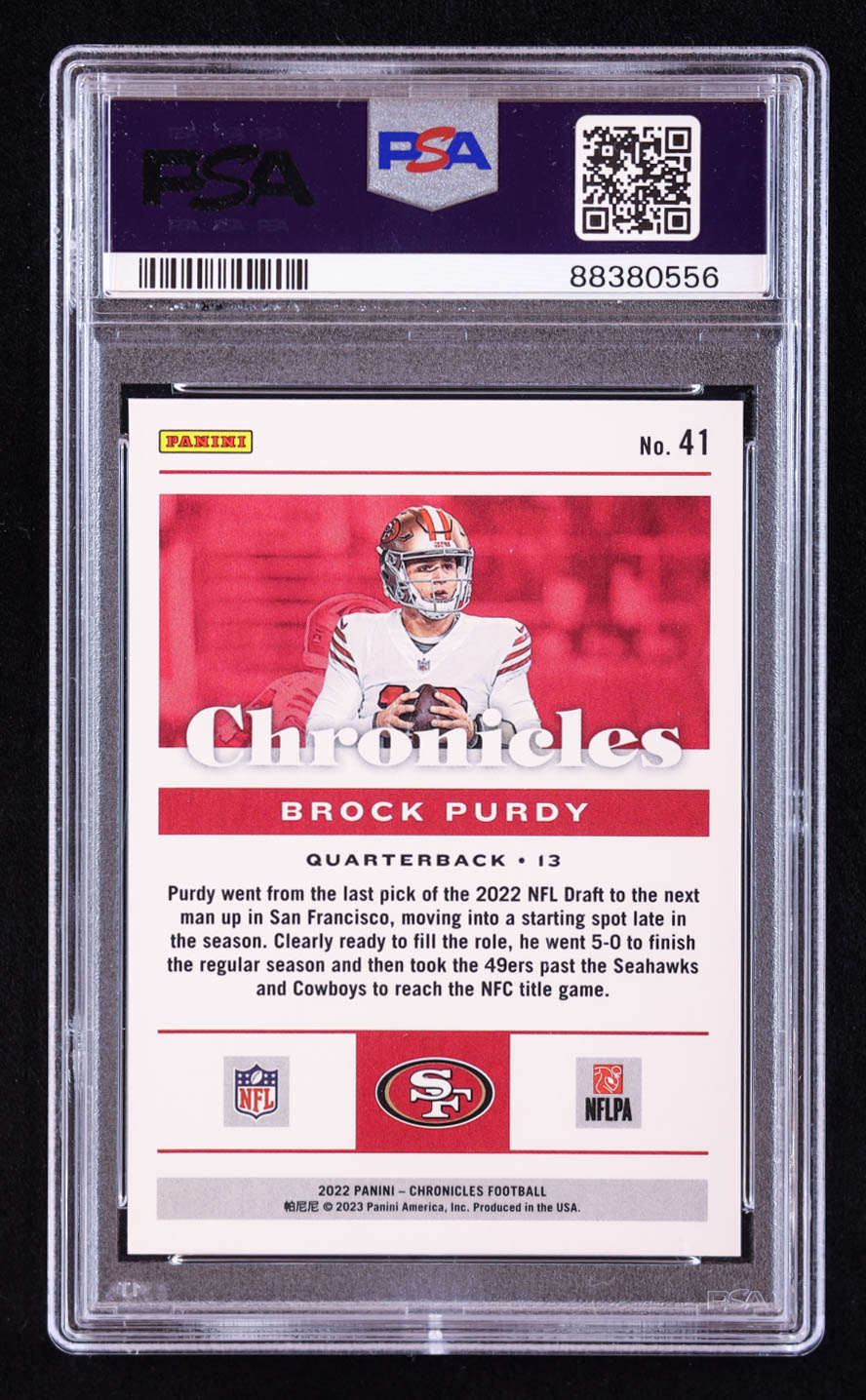 Brock Purdy 2022 Panini Chronicles #41 RC (PSA 10)