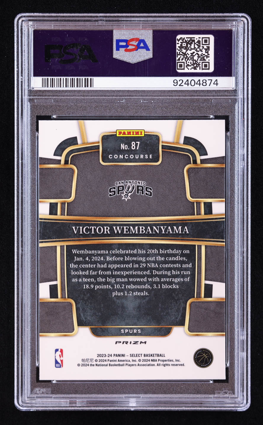 Victor Wembanyama 2023-24 Select Prizms Blue Cracked Ice #87 RC (PSA 10)