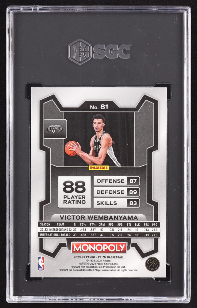 Victor Wembanyama 2023-24 Panini Prizm Monopoly #81 RC (SGC 10)