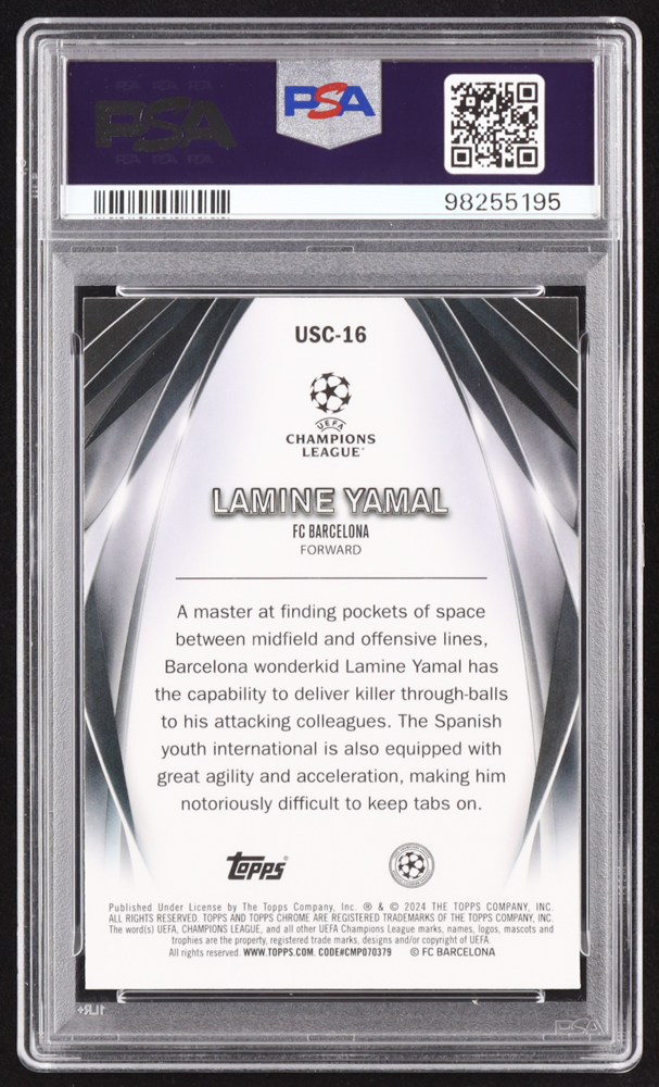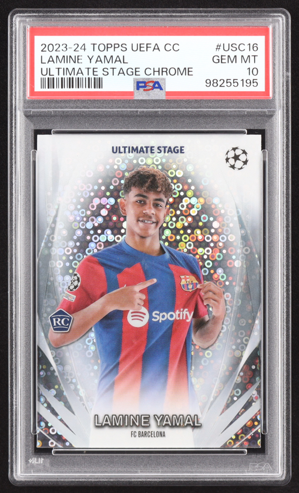 Lamine Yamal 2023-24 Topps UEFA Club Competitions Ultimate Stage Chrome #USC16 RC (PSA 10)