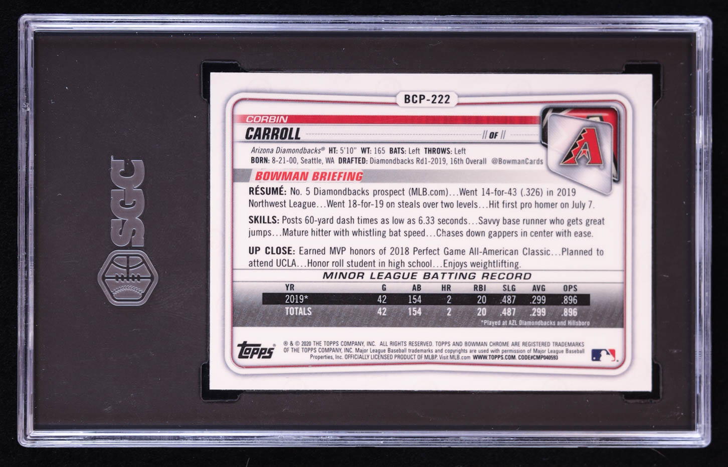 Corbin Carroll 2020 Bowman Chrome Mega Box Prospects Refractors #BCP222 RC (SGC 10)