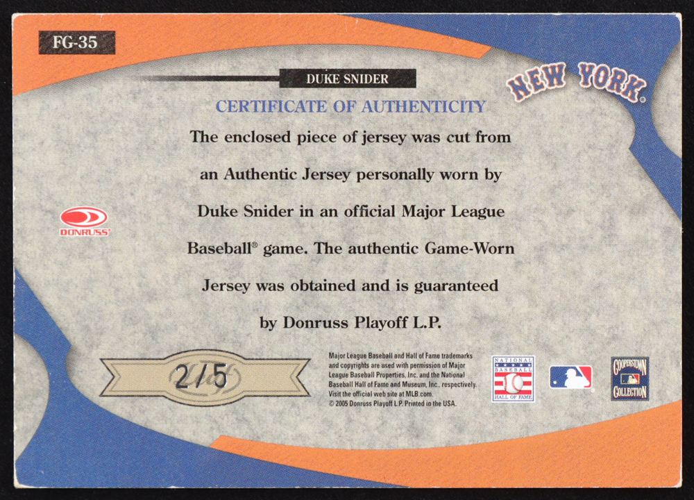 Duke Snider 2005 Leaf Certified Materials Fabric of the Game #35 Mets Jersey #2/5
