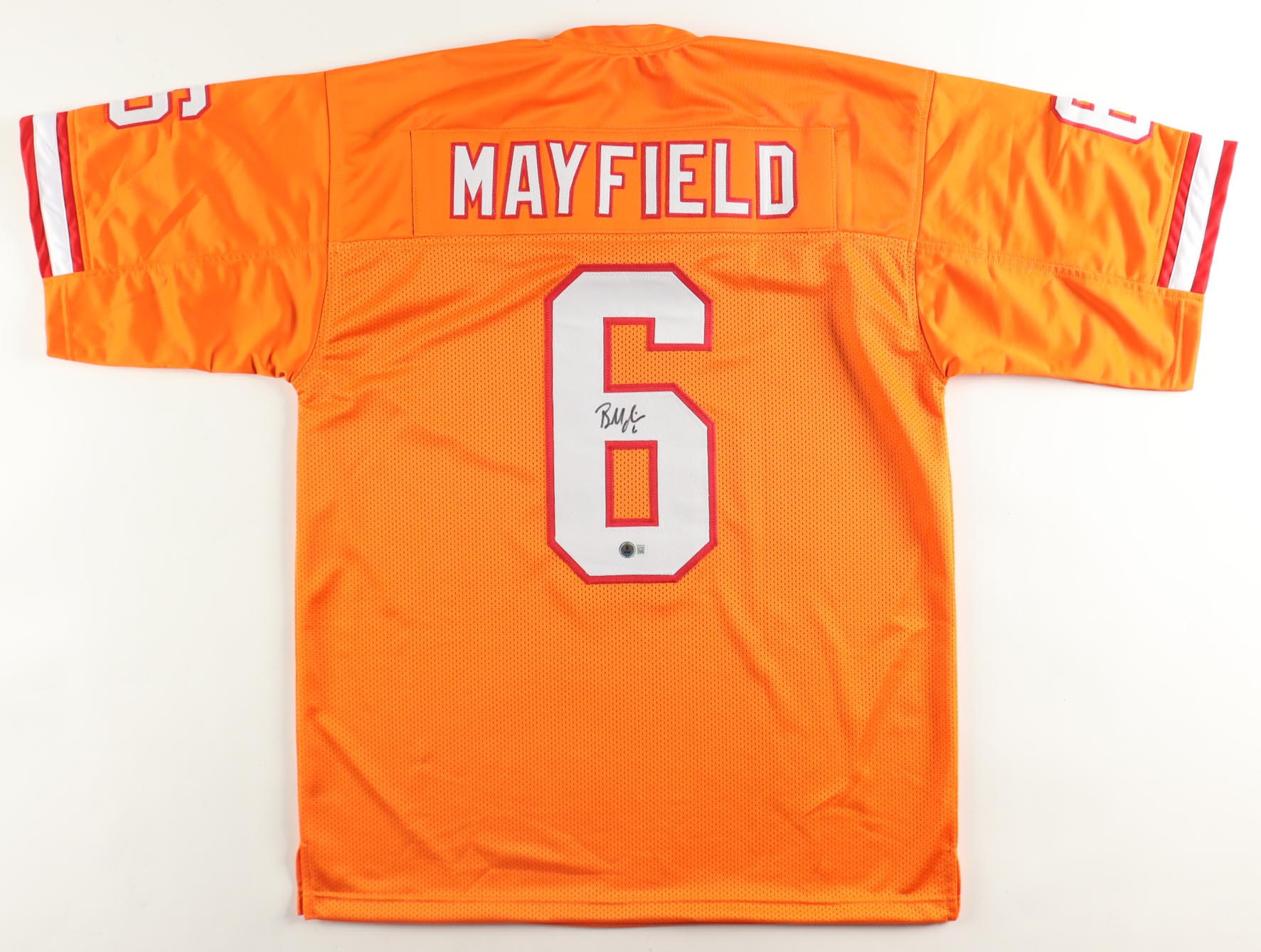 Custom jersey with everything sewn on, size XL. Hand-signed by Baker Mayfield.