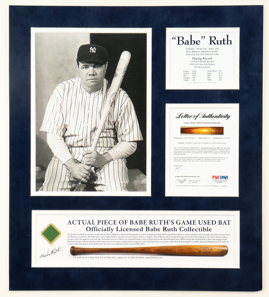 Babe Ruth Yankees Custom Matted Game-Used Baseball Bat Piece (PSA)