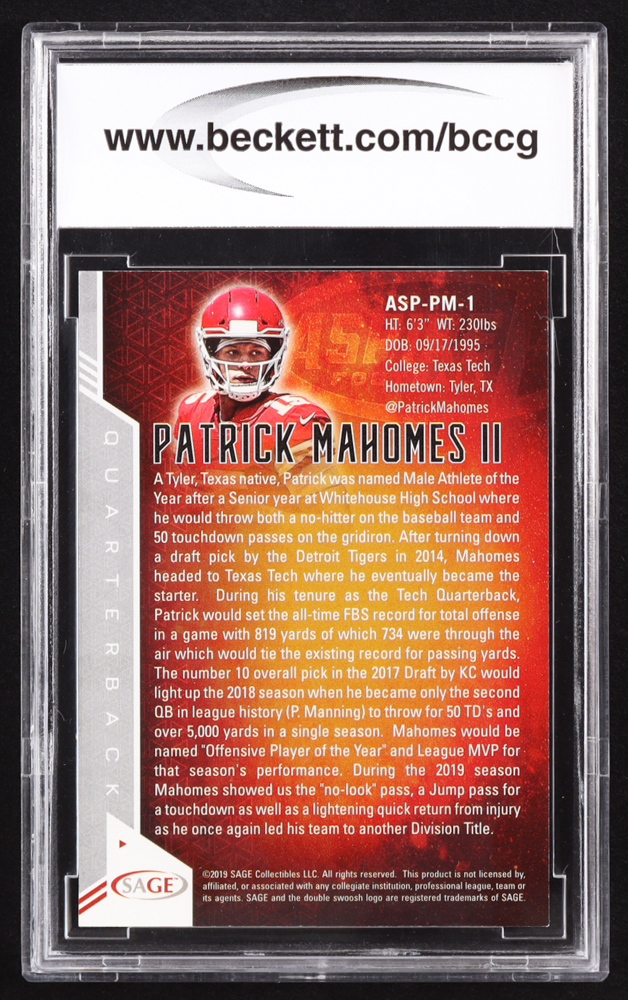 Patrick Mahomes II 2019 SAGE Aspire Silver #ASPPM1 (BCCG 10)
