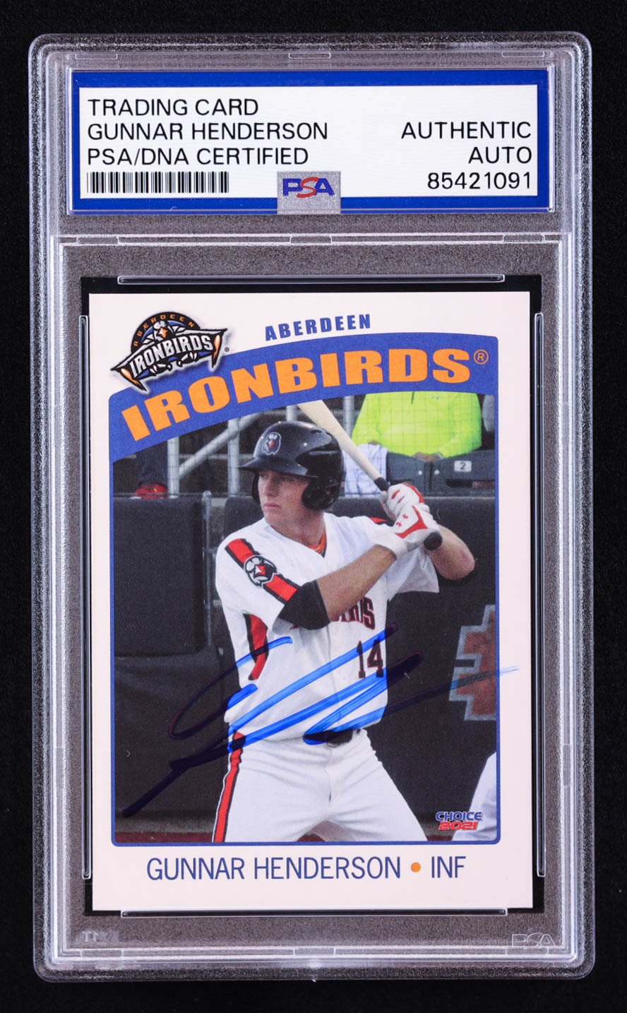 Gunnar Henderson Signed 2021 Choice Ironbirds #14 RC (PSA)