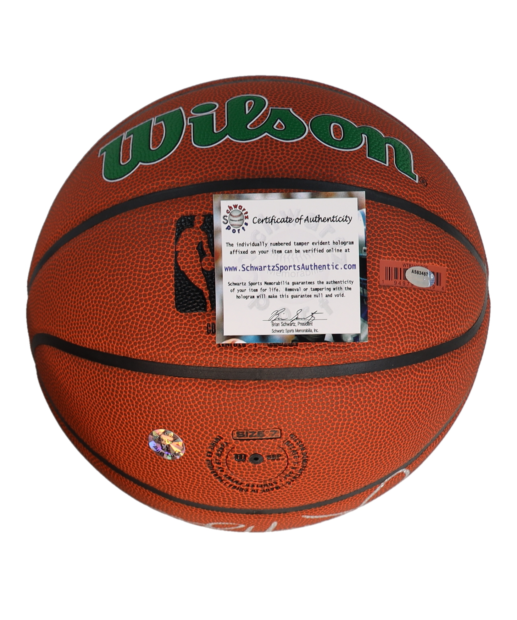 The lot / autograph(s) includes an official Schwartz Sports Hologram and matching COA for authenticity purposes. Also includes an official Larry Bird player hologram.