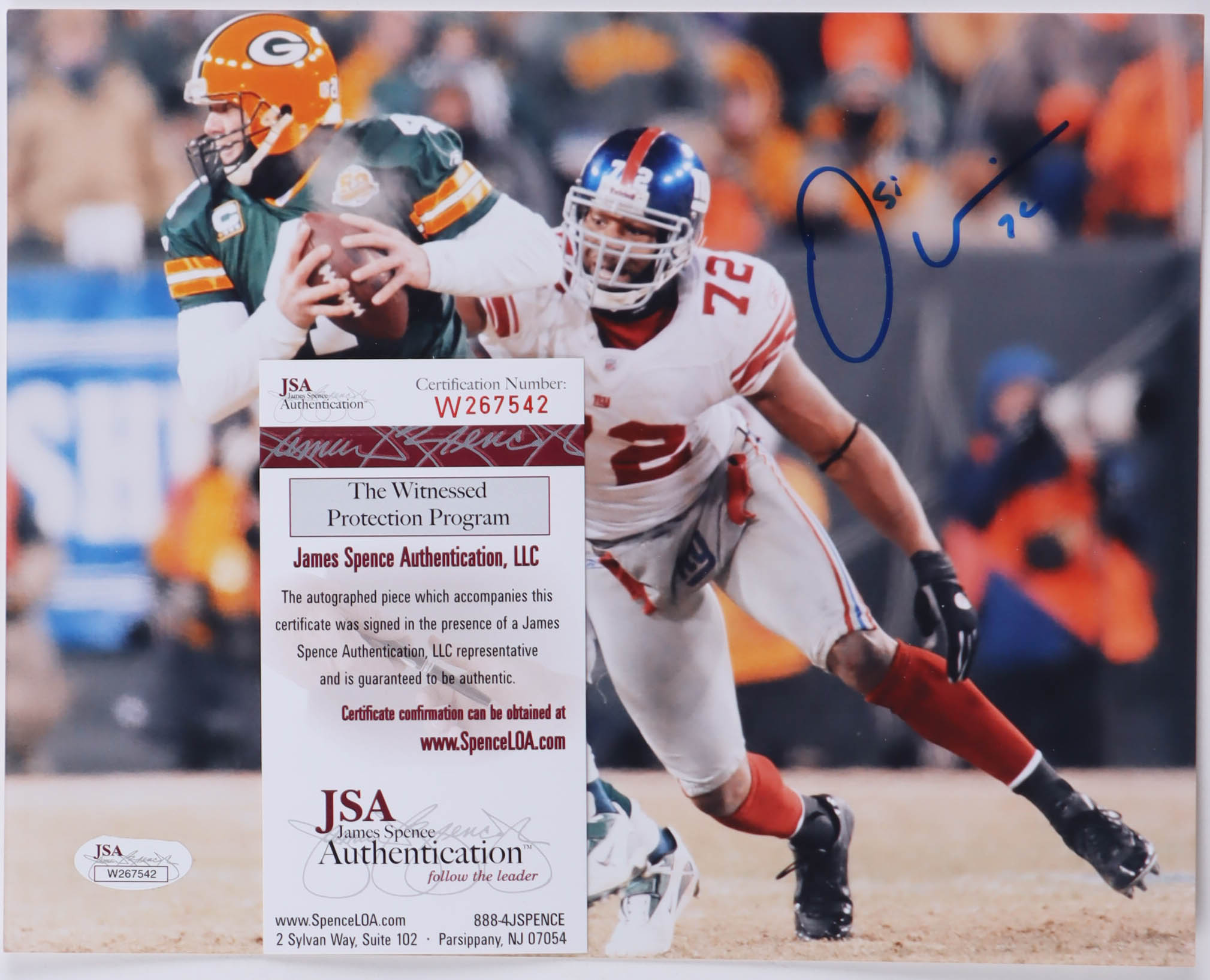 Photo measures 8" x 10" in size and has been hand-signed by Osi Umenyiora (New York Giants).
