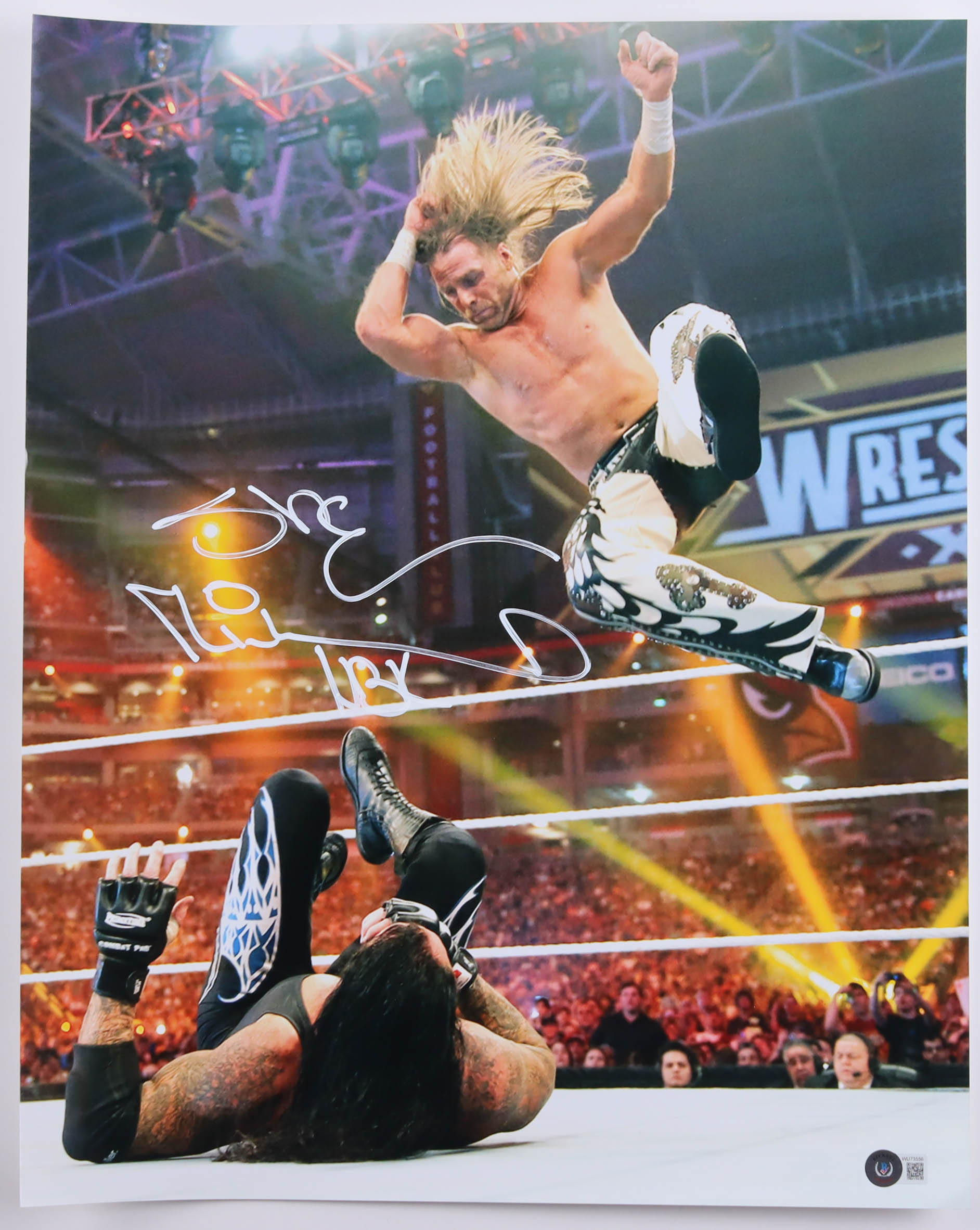 Photo measures 16" x 20" in size and has been hand-signed and inscribed by Shawn Michaels (HOF).