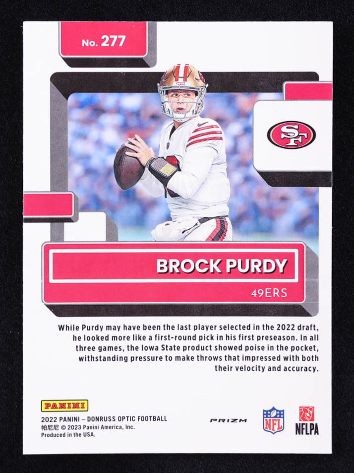Brock Purdy 2022 Donruss Optic Purple Shock #277 RR RC