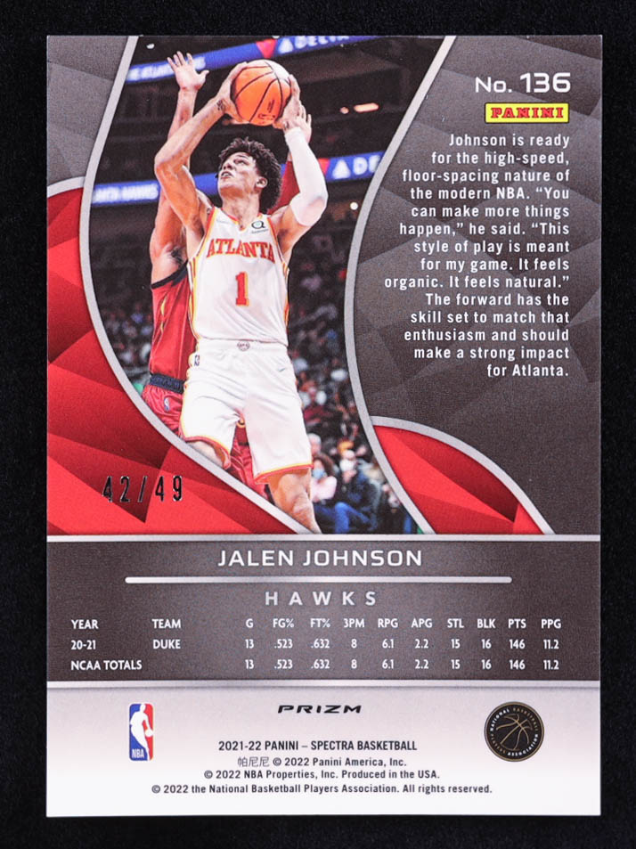 Jalen Johnson 2021-22 Panini Spectra Asia Blue and Orange #136 RC #42/49