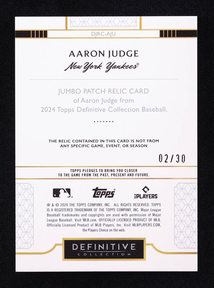 Aaron Judge 2024 Topps Definitive Collection Patch Blue #DRJCAJU #2/30