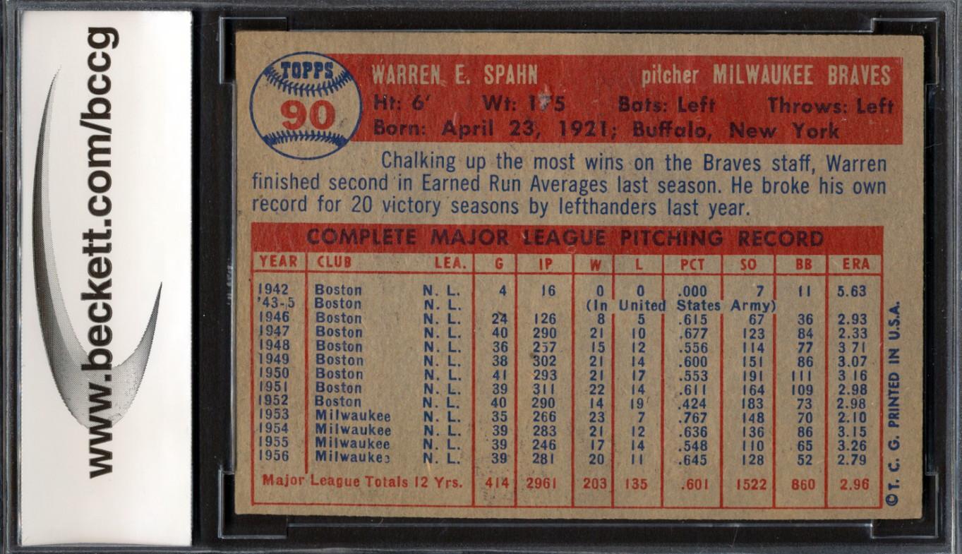 Warren Spahn 1957 Topps #90 (BCCG 6)