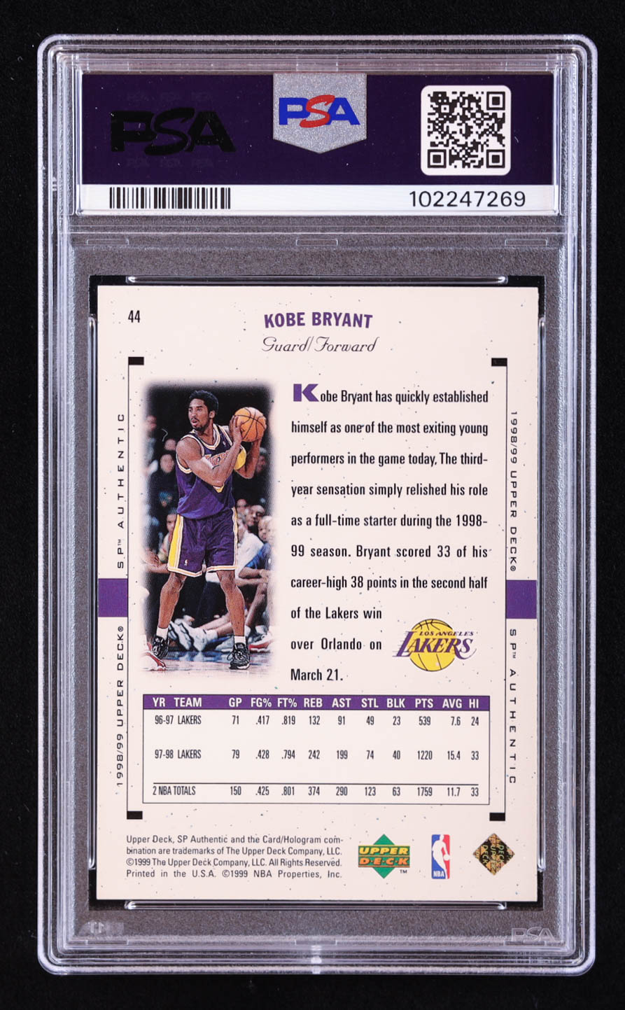 Kobe Bryant 1998-99 SP Authentic #44 (PSA 8)