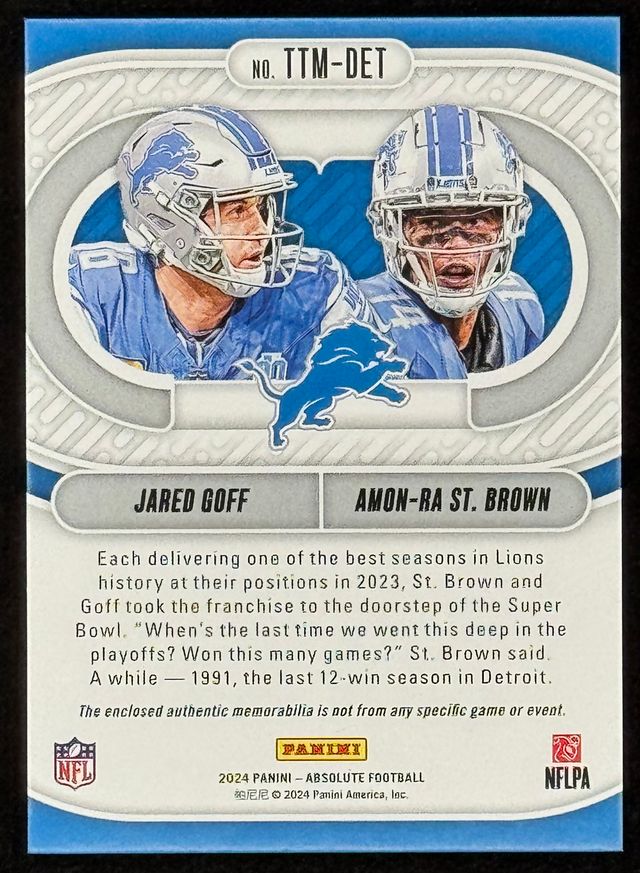 Jared Goff / Amon-Ra St. Brown 2024 Absolute Team Tandem Materials #TTMDET #84/99