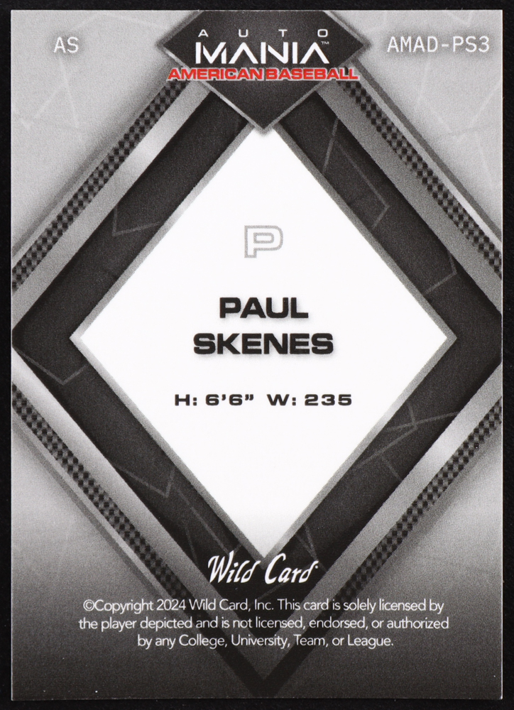 Paul Skenes 2024 Wild Card Auto Mania Diamond American Bald Eagle Laser #AMADPS3 RC #1/1