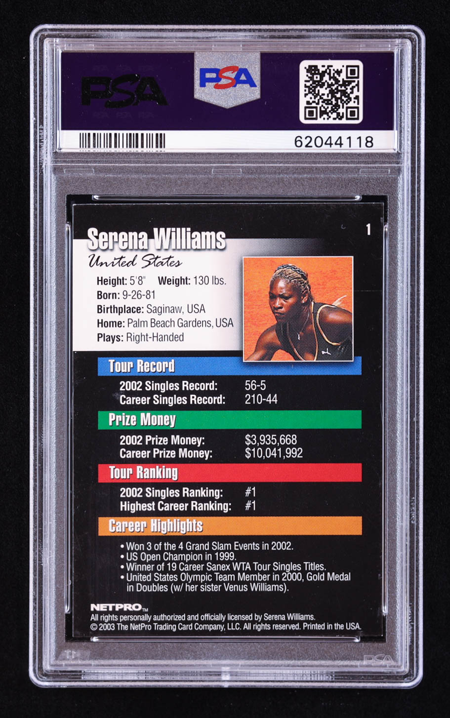Serena Williams 2003 NetPro #1 RC (PSA 8)