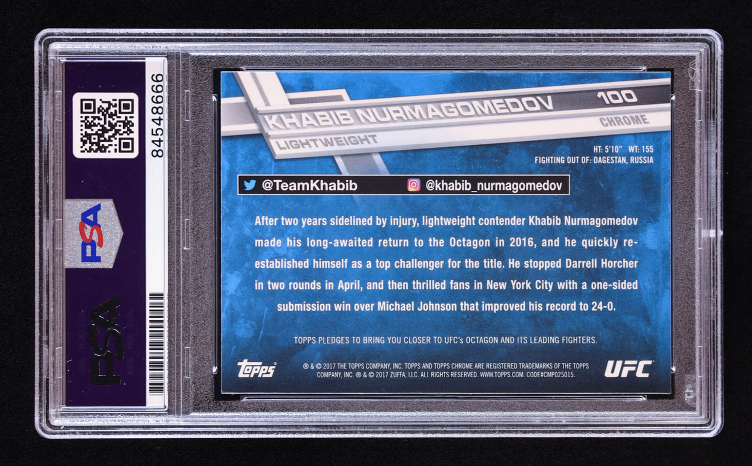 Khabib Nurmagomedov Signed 2017 Topps Chrome UFC #100 (PSA)