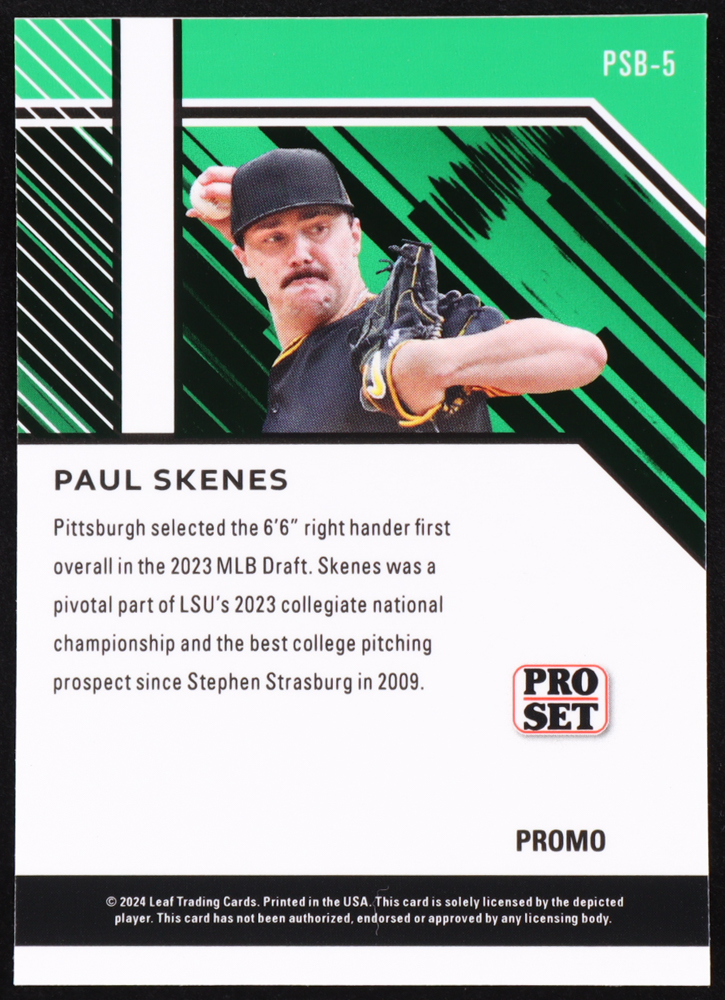 Paul Skenes 2024 Leaf Pro Set Promos Blue Shimmer #PSB5 RC