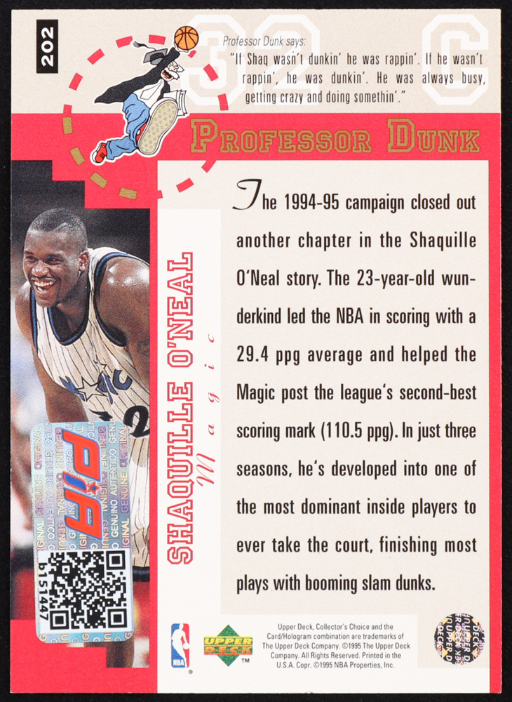Shaquille O'Neal Signed 1995-96 Collector's Choice #202 PD (PIA)