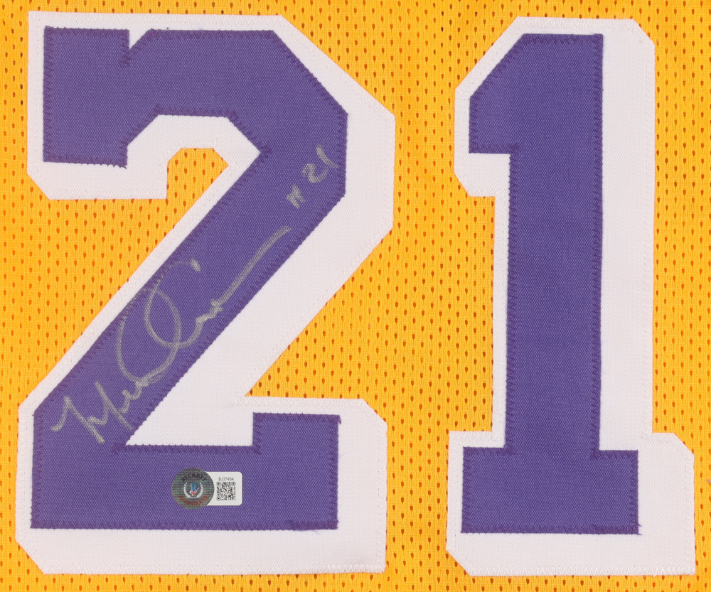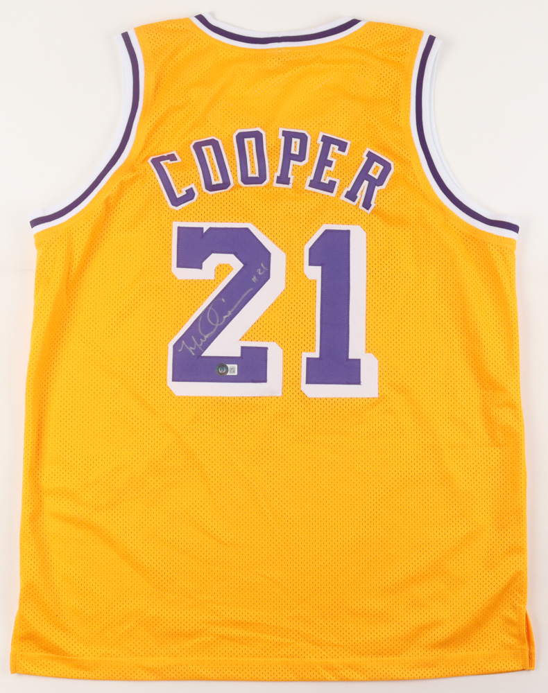 Custom jersey with everything sewn on, size XL. Hand-signed by Michael Cooper (HOF).