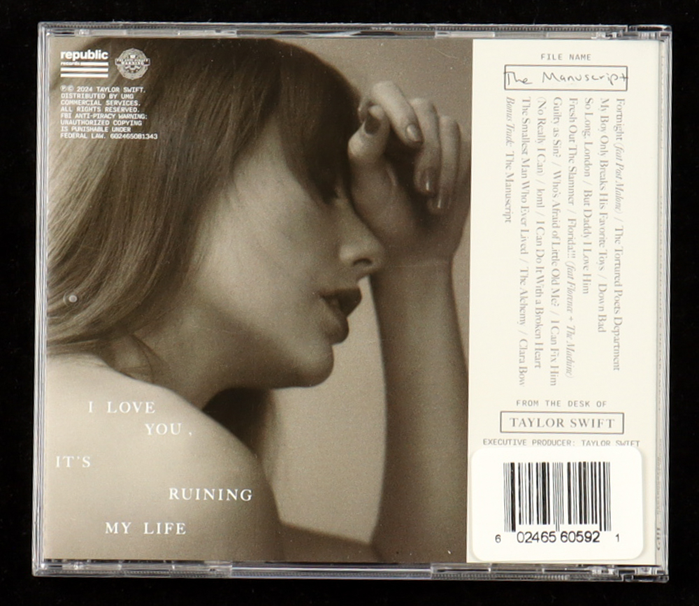 "The Tortured Poets Department" CD insert has been hand-signed by Taylor Swift. The disc and case are included as shown.
