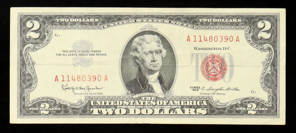 1963 United States $2 Two Dollar Legal Tender Note - Red Seal