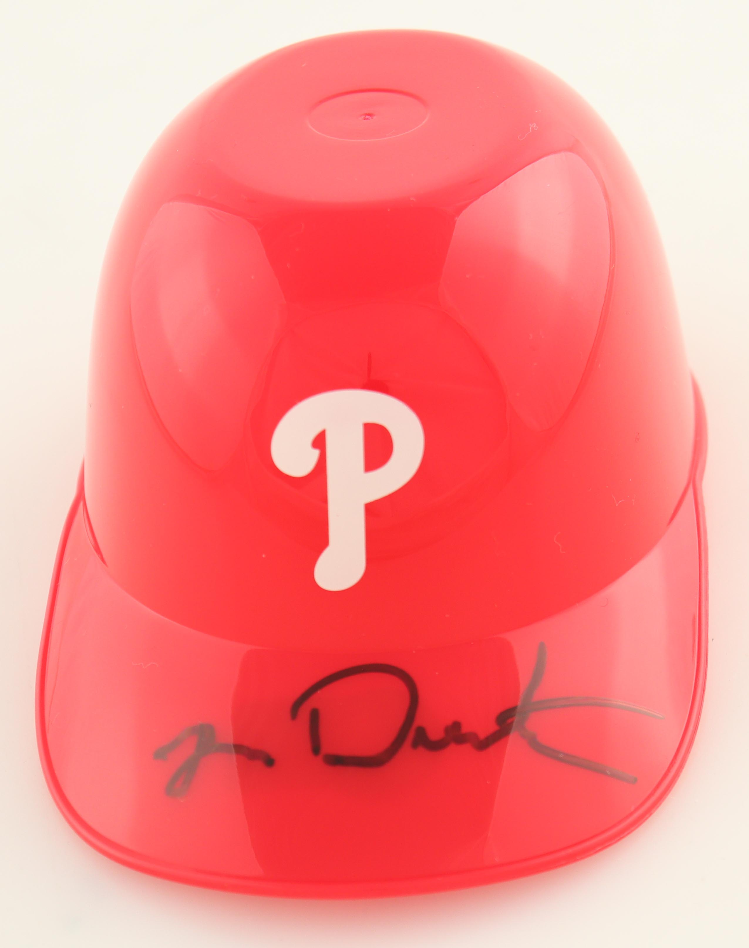 Philadelphia Phillies plastic souvenir micro batting helmet. Hand-signed by Lenny Dykstra.