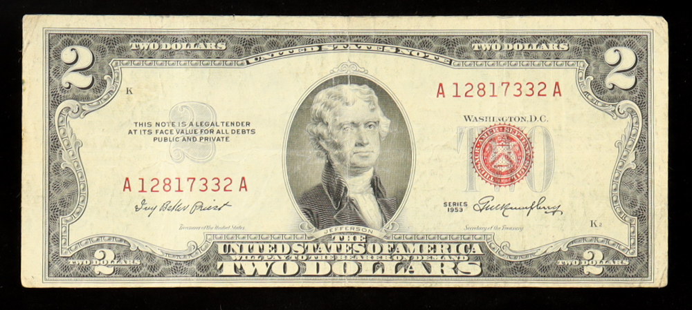 1953 United States $2 Two Dollar Legal Tender Note - Red Seal