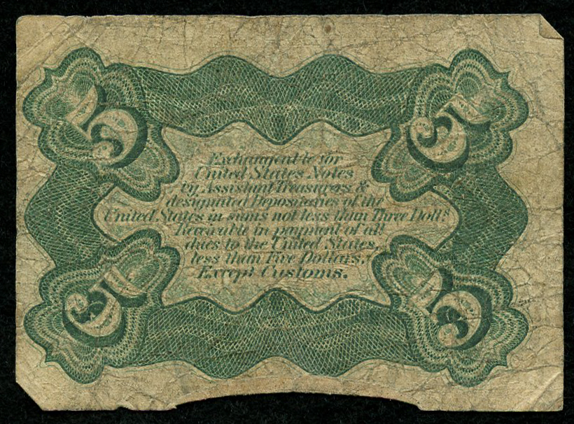 1863 United States 5¢ Five Cents Fractional Bank Note Bill (Third Issue)