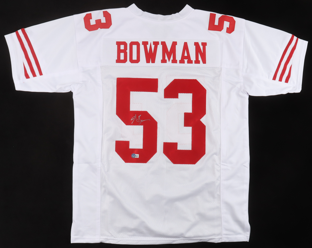 Custom jersey. Everything is sewn on, size XL. Hand-signed by NaVorro Bowman.