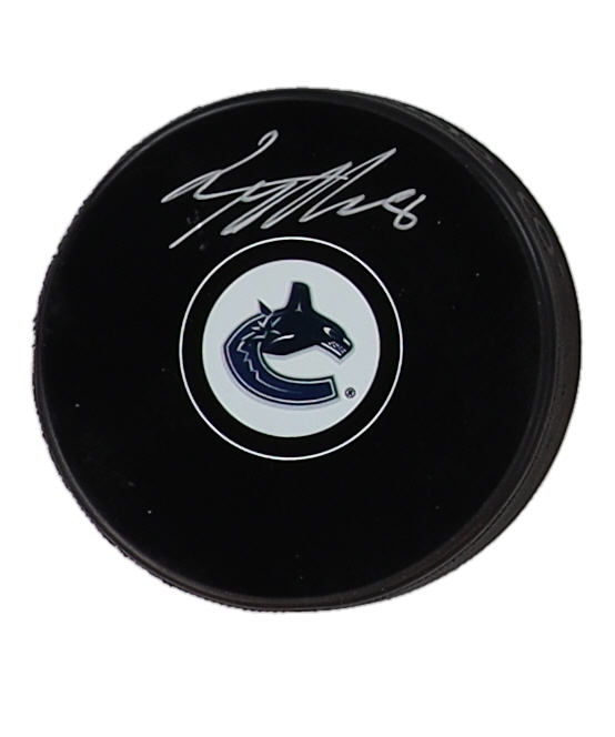 Conor Garland Signed Canucks Logo Hockey Puck (Premium Autographs)