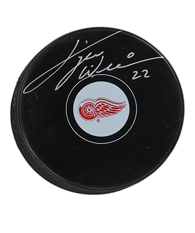 Detroit Red Wings logo hockey puck has been hand-signed by Tiger Williams.