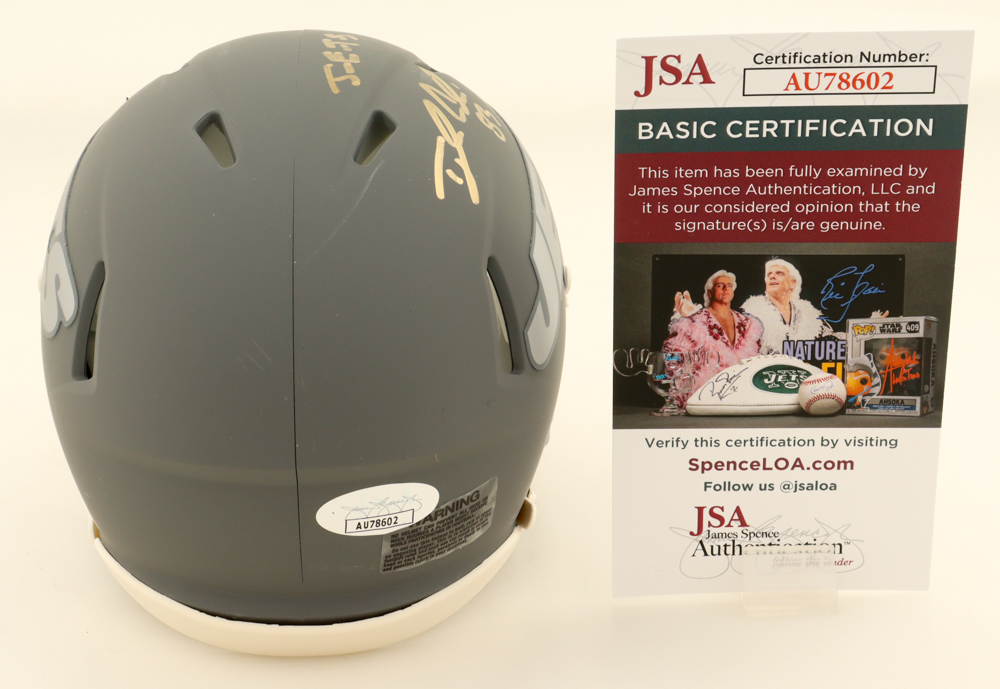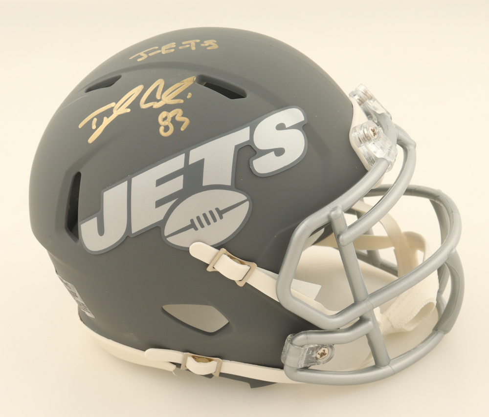Riddell signed New York Jets Slate Alternate speed mini helmet has been hand-signed and inscribed by Tyler Conklin.