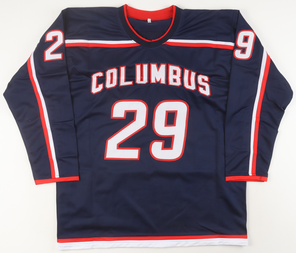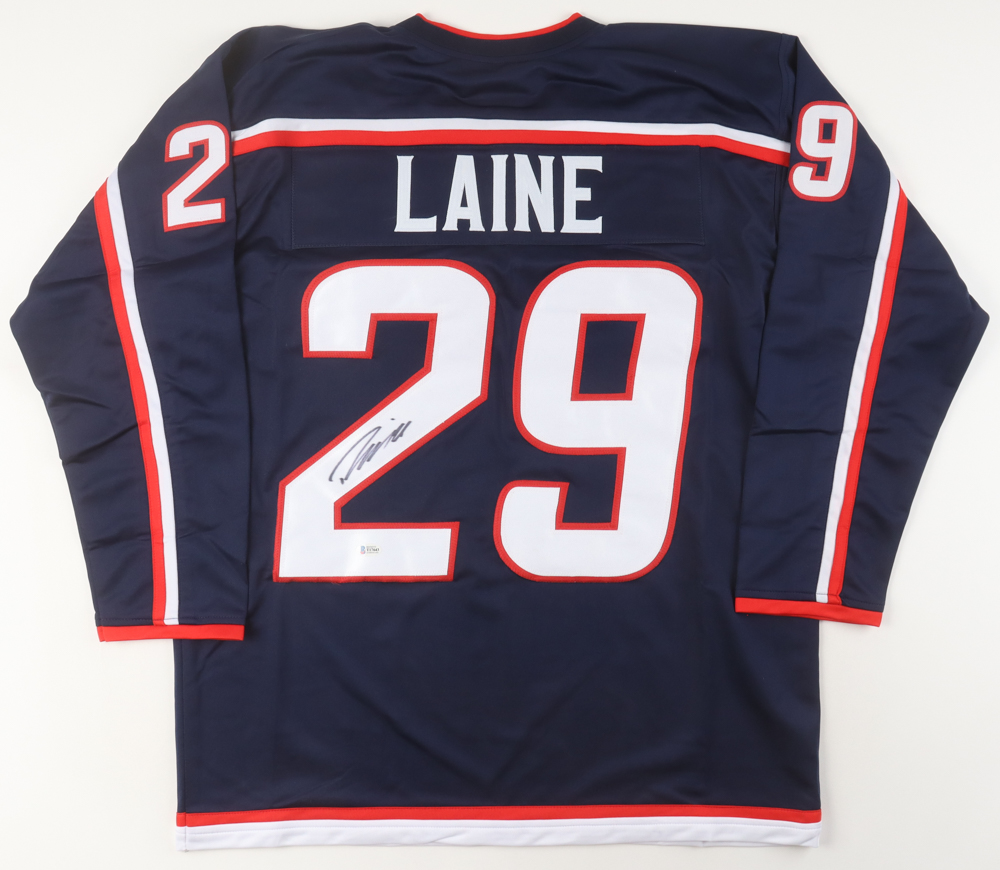 Custom jersey. Everything is sewn on, size XL. Hand-signed by Partrik Laine.