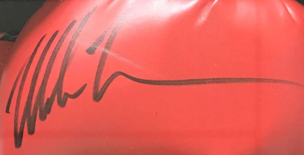 Shadowbox display measures approximately 18" x 19" x 4" in size and features an Everlast boxing glove that has been hand-signed in black felt-tip pen by Mike Tyson (HOF).