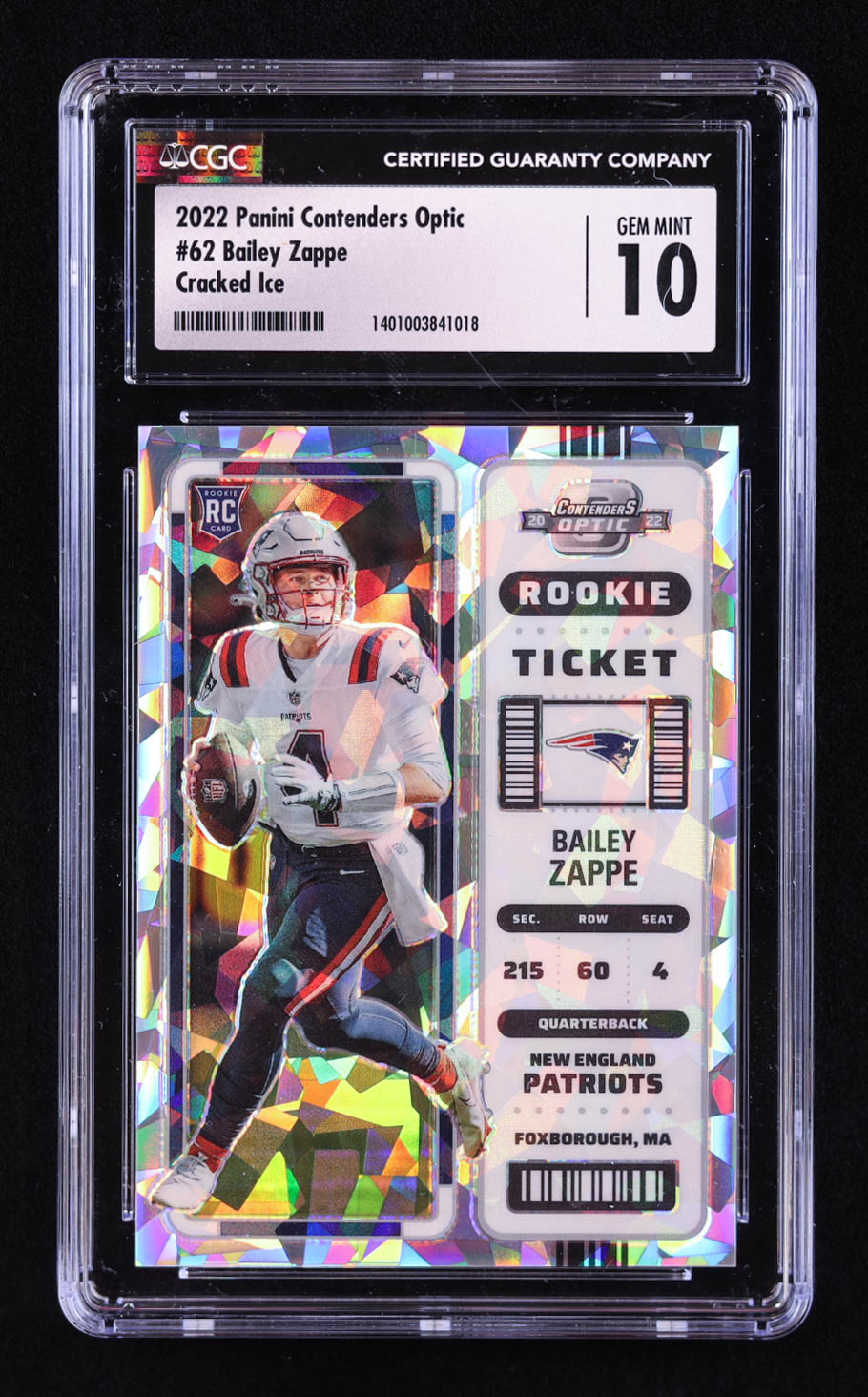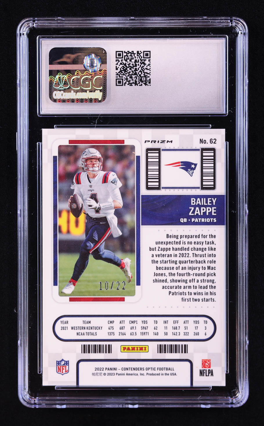 Bailey Zappe 2022 Panini Contenders Optic Cracked Ice #62 RC #10/22 (CGC 10)