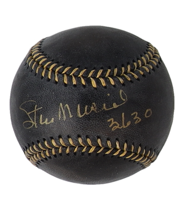 Stan Musial Signed OML Black Leather Baseball Inscribed "3630" (JSA & Stan The Man)